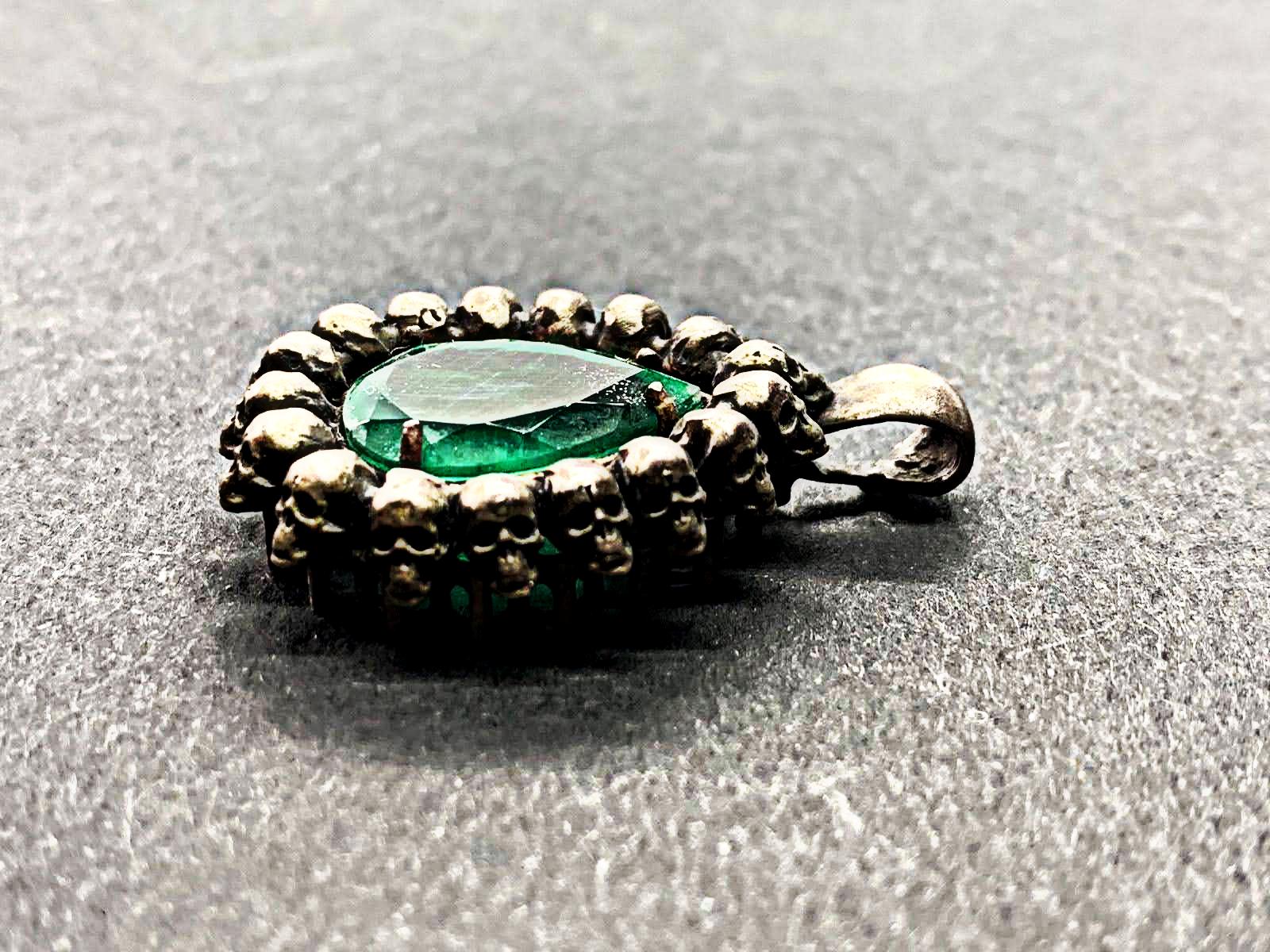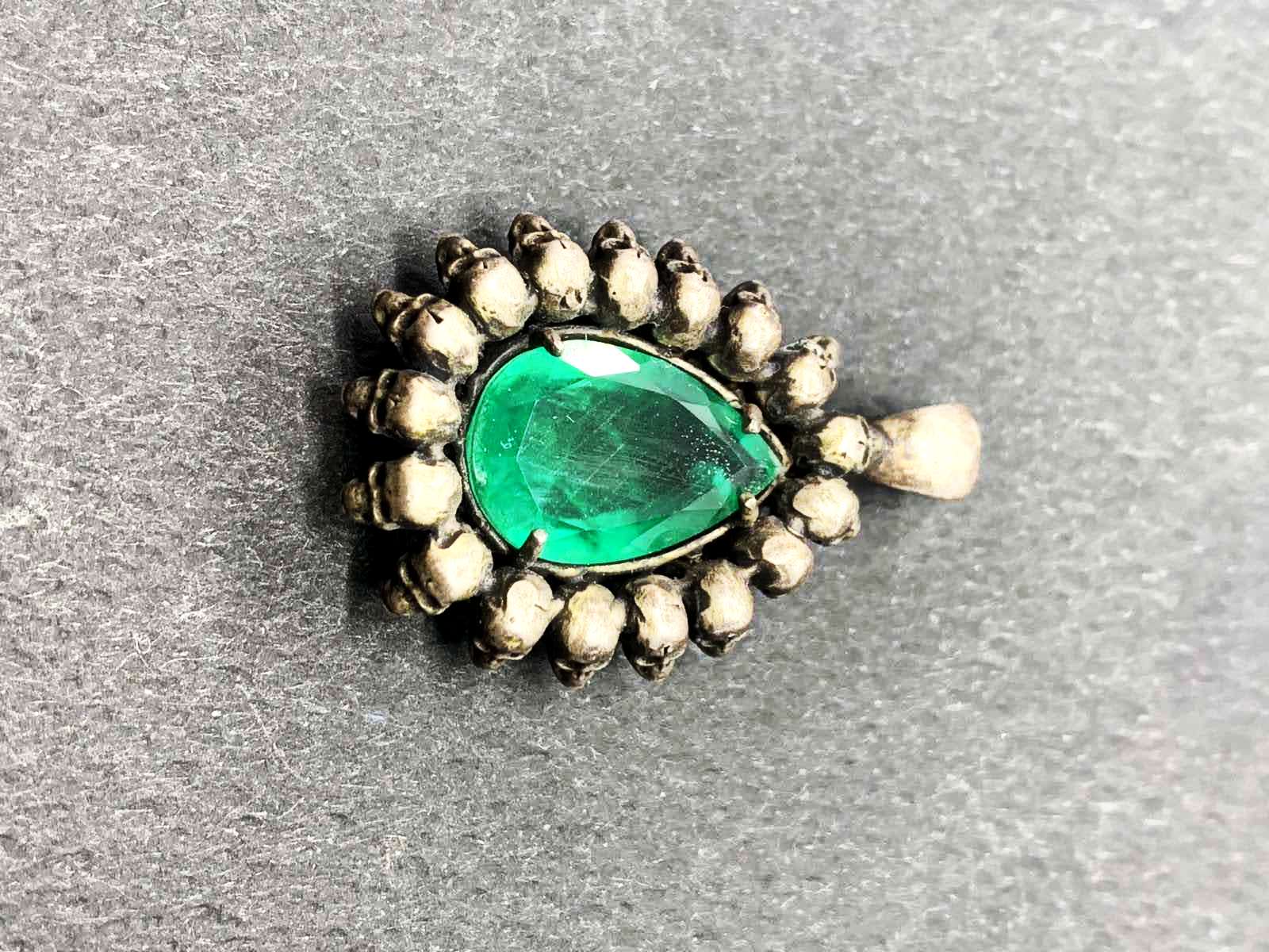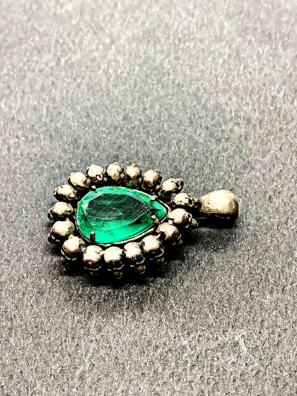 Poir Pendant set with one emerald 5.61ct, handcrafted from silver.
