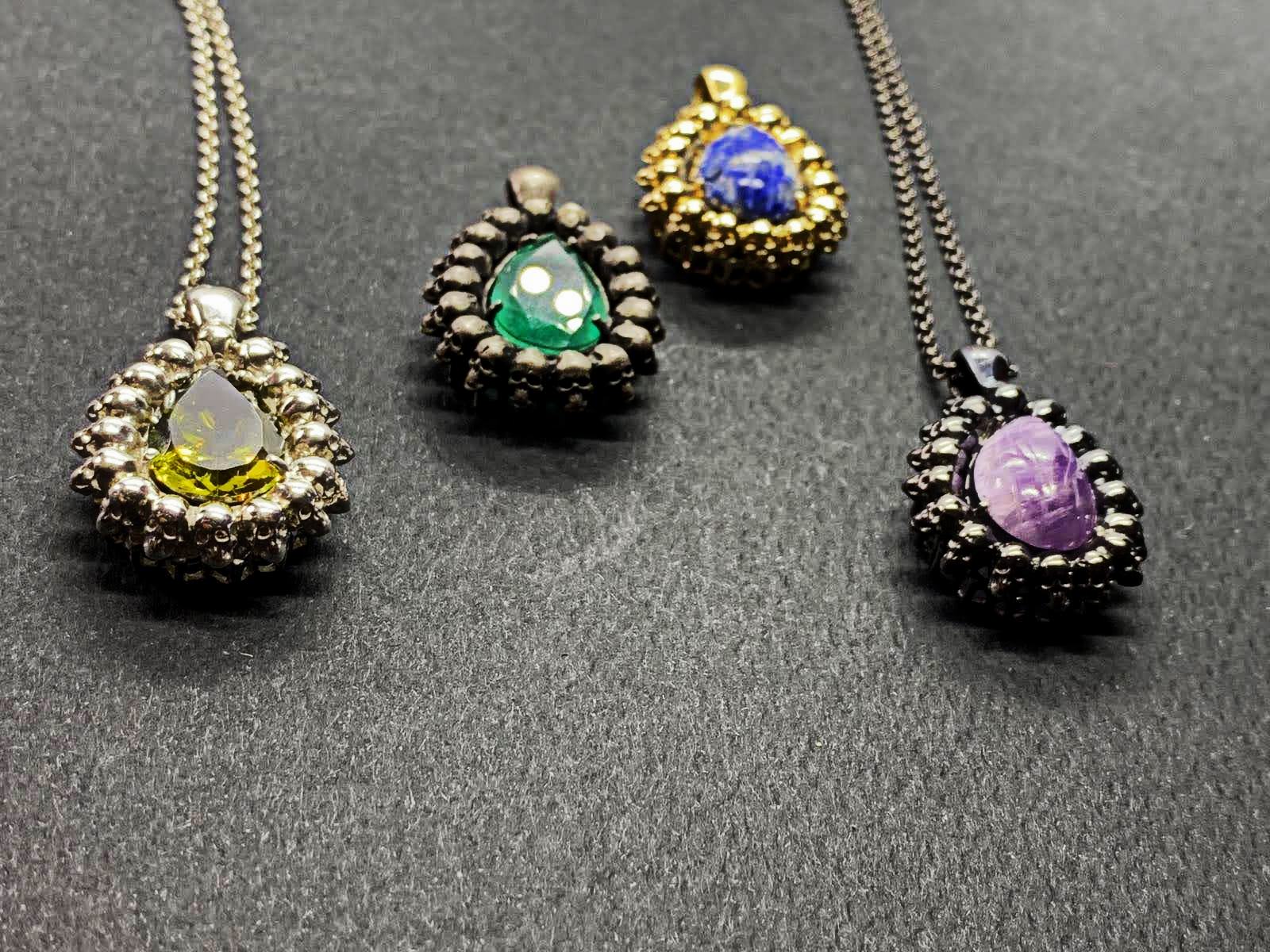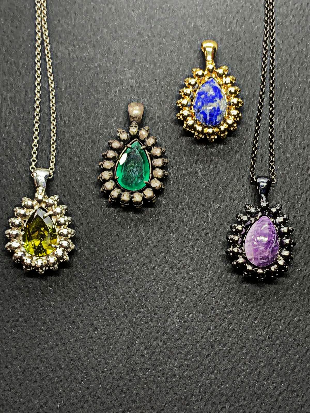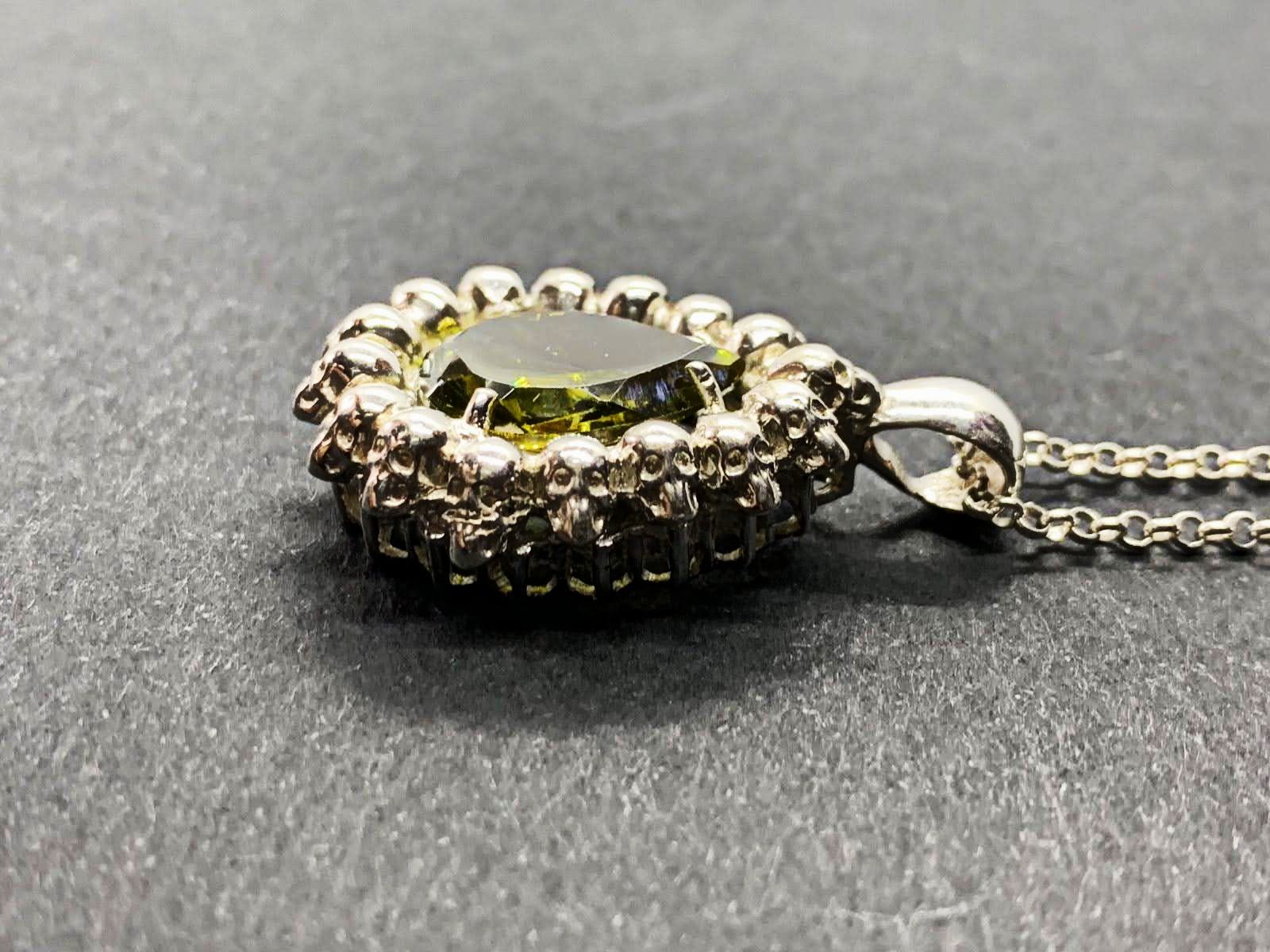 Poir Pendant set with one synthetic peridot, handcrafted from silver.